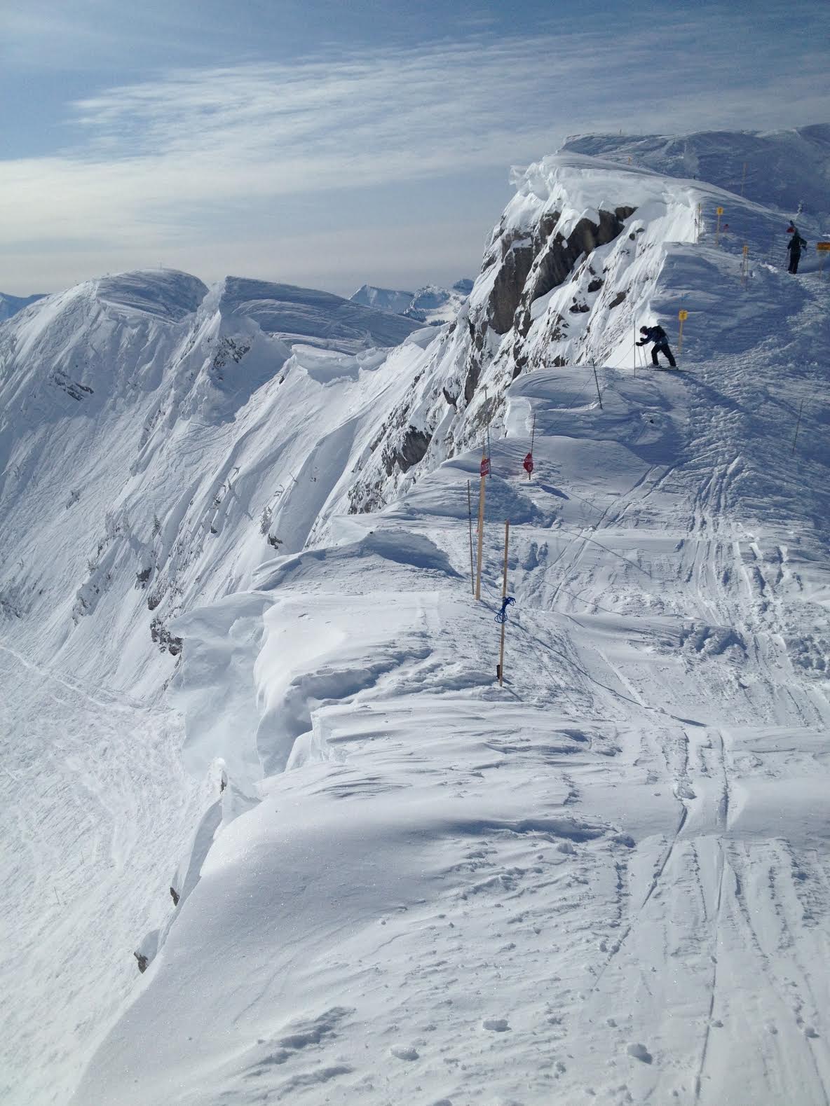 Photo taken by Sarah Van Middlesworth – with the author choosing which line to take when he drops in at Fernie Ski Resort, B.C.