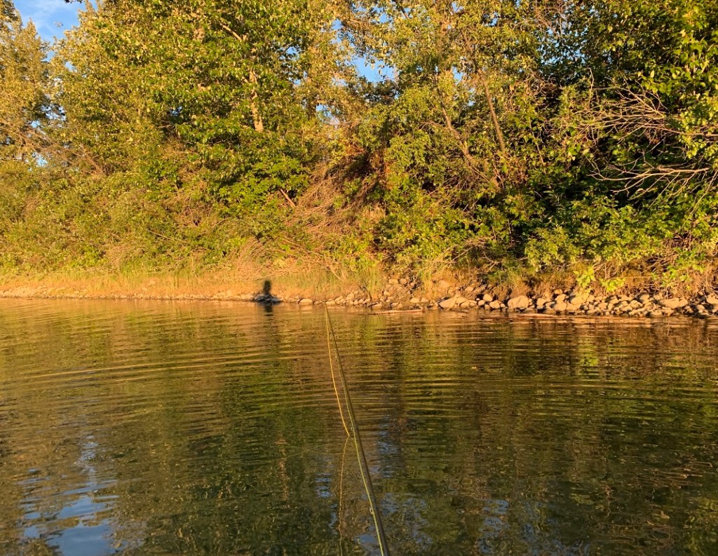 Feeling the wind on my face, the force of the under-current, and the release of a loaded line all made each outing worthwhile. The crowning moment would come when I got to see the sunset. Each time, the multi-coloured sky would take my breath away. Equally important, was the glistening of the sun’s reflection dancing on the water’s surface. It was all I could do to stand motionless with the river rushing past me. Other than the previous night’s spectacular display of evening colours, it was the best motion picture I had ever seen!